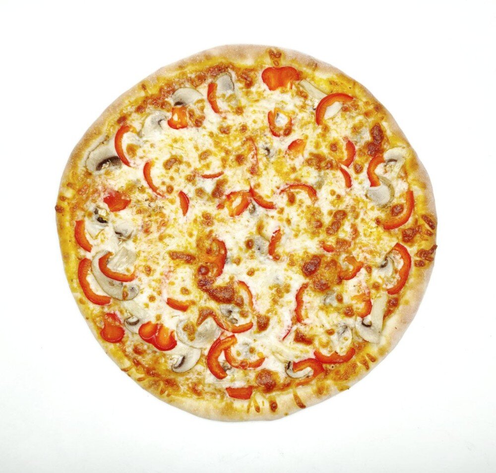 Шампиньоны, перец болгарский , моцарелла, томатный соус, традиционное тесто