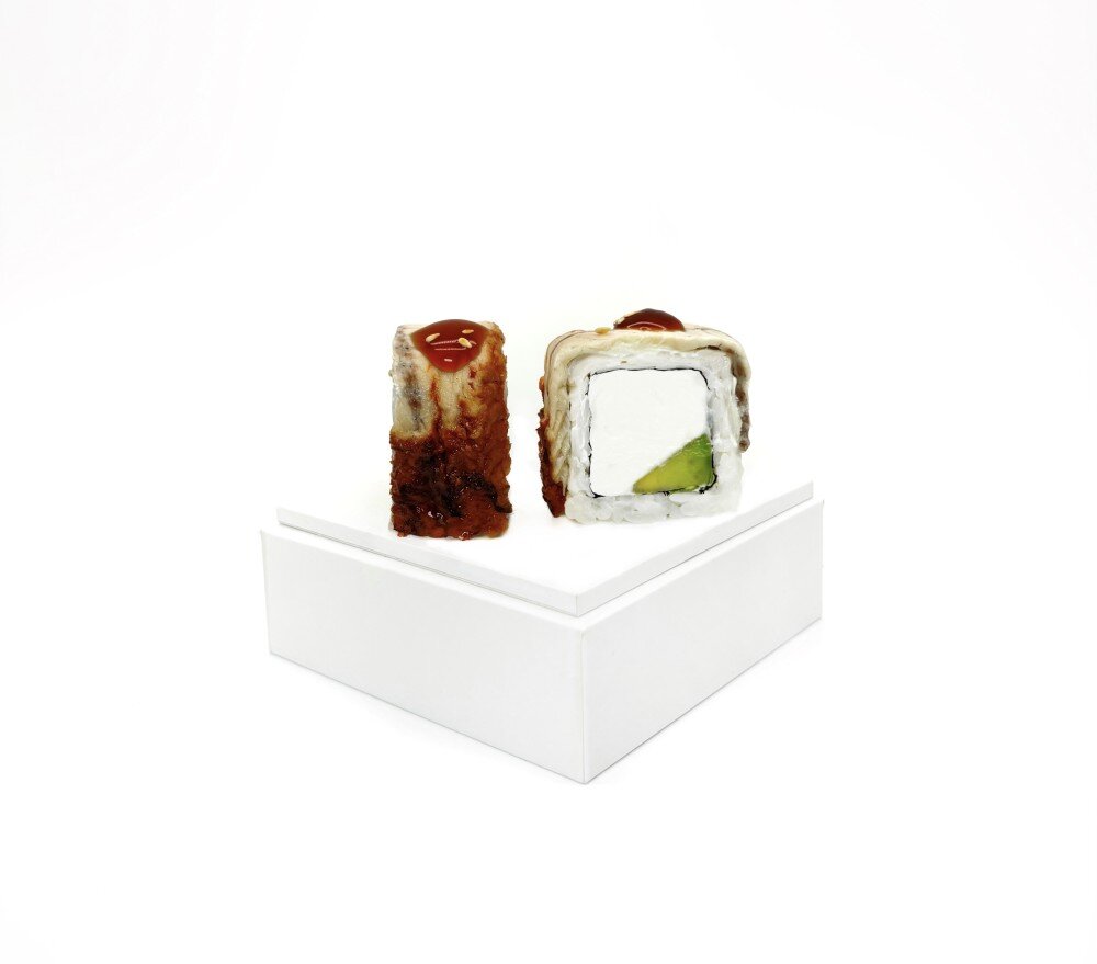 Угорь жаренный, сыр сливочный, авокадо, унаги, кунжут, рис, нори