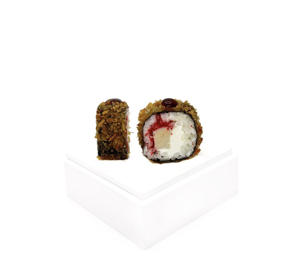Снежный краб, сыр сливочный, икра масаго, кляр, сухари панко, унаги, рис, нори